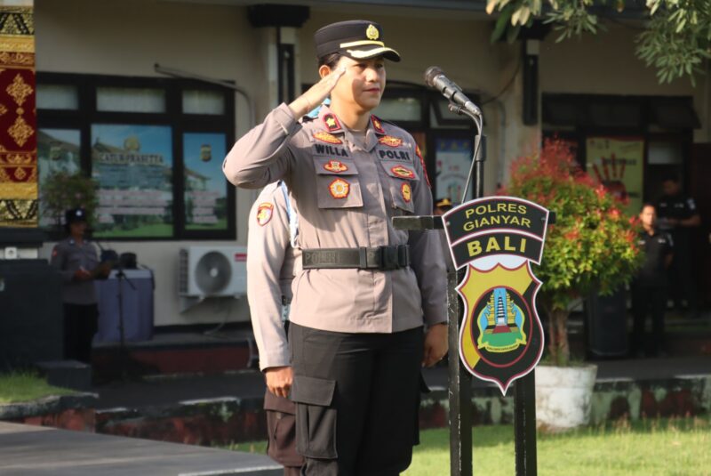 Bertindak selaku Inspektur Upacara, Wakapolres Gianyar Kompol Willa Jully Nendissa, S.I.K., membacakan amanat Kapolres Gianyar yang menekankan pentingnya menjaga kepercayaan publik melalui integritas dan profesionalisme dalam bertugas.