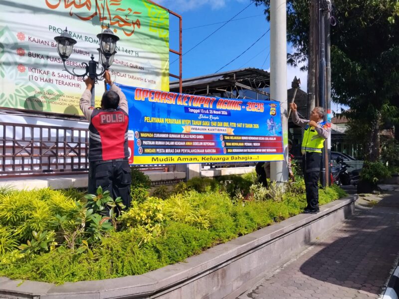 Dalam rangka mendukung pelaksanaan Operasi Ketupat Agung 2026, Polres Gianyar melaksanakan kegiatan pemasangan spanduk imbauan kamtibmas di sejumlah titik strategis di wilayah Kecamatan Gianyar. Kegiatan ini dilakukan sebagai upaya memberikan edukasi dan mengingatkan masyarakat untuk bersama-sama menjaga keamanan dan ketertiban selama periode operasi kepolisian menjelang hari raya.