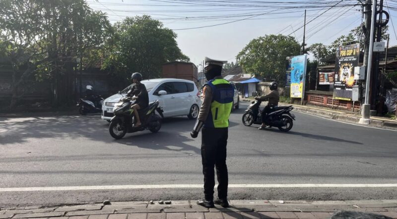 Personel Polsek Abiansemal tampak sigap mengatur arus kendaraan, membantu penyeberangan pejalan kaki, serta memberikan imbauan kepada pengendara agar selalu mematuhi peraturan lalu lintas dan mengutamakan keselamatan dalam berkendara.