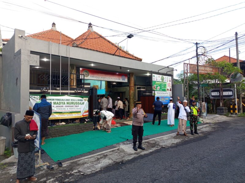 “Personel kami telah diploting di beberapa lokasi pelaksanaan Sholat Id untuk memastikan kegiatan ibadah berjalan aman dan lancar. Kami juga bersinergi dengan TNI, pecalang, serta pengamanan internal dari panitia masjid dalam menjaga situasi kamtibmas tetap kondusif,” ujarnya.