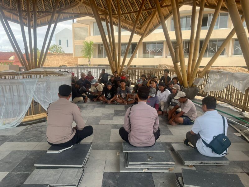 Kegiatan Jumat Curhat di pimpin Panit 1 Binmas Ipda Gusti Made Sardika SH di dampingi Bhabinkamtibmas Desa Canggu Brigadir Bayu Arya SH. di hadiri puluhan pekerja proyek bangunan Villa Mewali Canggu