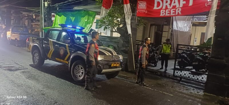 Dalam rangka menjaga keamanan dan kondusiftas menjelang perayaan hari raya Nyepi mendatang Personil Unit Samapta Polsek Kuta Utara melaksanakan Blue Light Patrol di pimpin Pawas Ipda I Nyoman Darmaya sambangi anak anak muda saat mengerjakan ogoh ogoh di masing masing Banjar setiap Desa maupun Kelurahan di daerah Hukum Polsek Kuta Utara, pada Selasa (24/02/2026). Pukul 23.00 Wita.