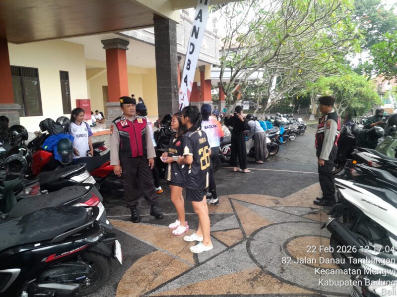 Dalam rangka memastikan kegiatan Porsenijar berjalan aman dan lancar, Polsek Mengwi melaksanakan pengamanan di GOR Dati II Kabupaten Badung, yang berlokasi di Desa Mengwi, Kecamatan Mengwi, Kabupaten Badung, pada Minggu (22/02/2026)
