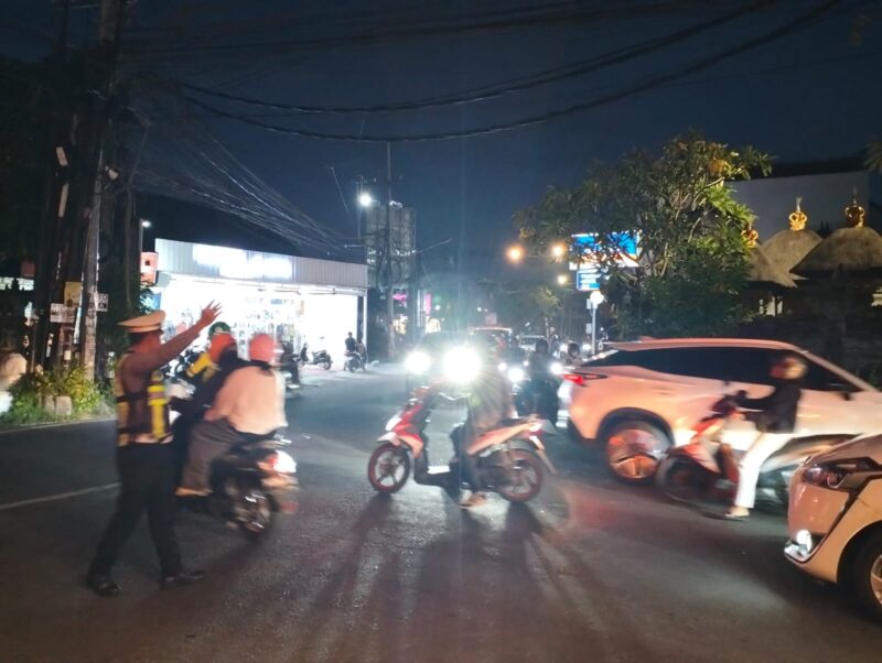 Guna menjaga kelancaran arus lalu lintas serta memberikan rasa aman dan nyaman bagi masyarakat, personel Polsek Mengwi melaksanakan kegiatan pengaturan lalu lintas pada malam hari di jalur Pererenan, Desa Pererenan, Kecamatan Mengwi, Kabupaten Badung, pada Senin (20/42026).