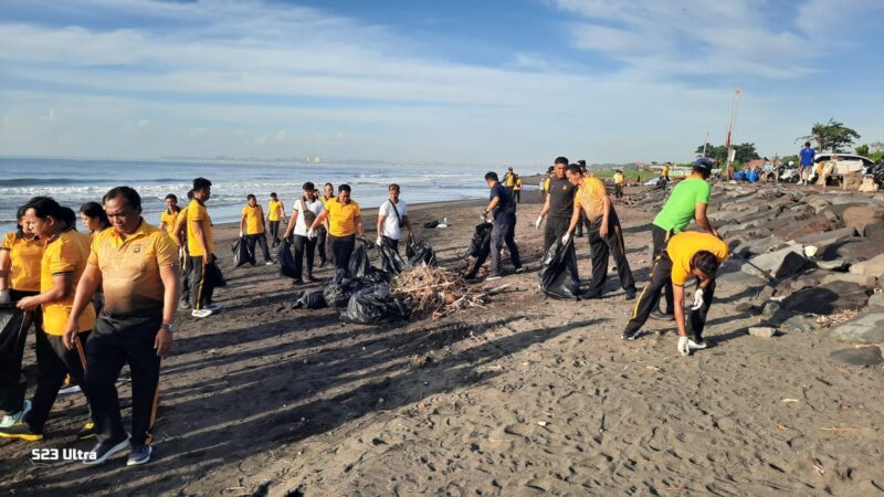 Dalam upaya menjaga kelestarian lingkungan dan kebersihan kawasan pesisir, personel kepolisian melaksanakan kegiatan bersih-bersih pantai di Pantai Gumicik, Desa Ketewel, Kecamatan Sukawati, Kabupaten Gianyar, pada Jumat (6/3/2026) pagi.