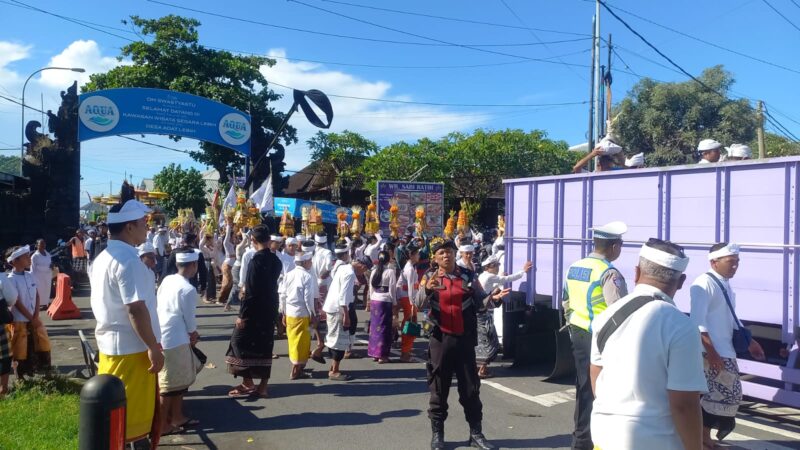 Kegiatan yang berlangsung mulai pukul 07.35 hingga 12.15 Wita tersebut dipusatkan di sepanjang Jalan Prof. IB Mantra, khususnya di simpang menuju akses pantai yang menjadi lokasi kegiatan keagamaan umat Hindu.
