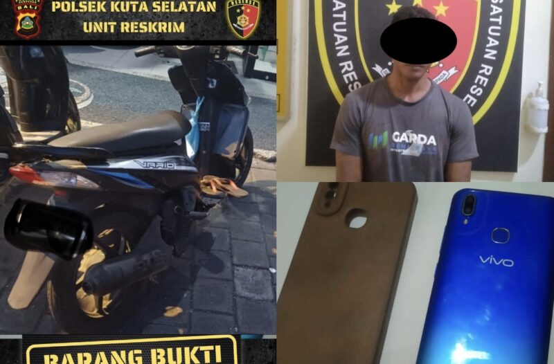 Unit Reskrim Polsek Kuta Selatan berhasil mengungkap kasus tindak pidana pencurian handphone yang terjadi di area proyek pembangunan villa, Jalan Pura Masuka Gang Kapuk, Desa Ungasan, Kecamatan Kuta Selatan, Kabupaten Badung.