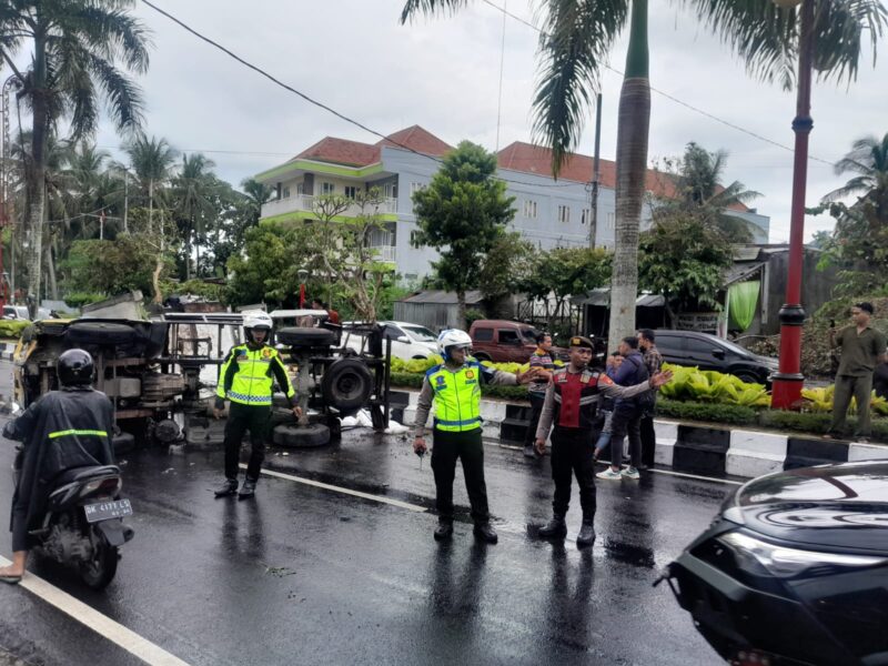 Kepolisian Sektor Blahbatuh menunjukkan respon cepat dalam menindaklanjuti laporan masyarakat melalui layanan call center 110 terkait peristiwa kecelakaan lalu lintas yang terjadi di depan Kantor Pajak, Jalan Darma Giri, Desa Buruan, Kecamatan Blahbatuh, pada Selasa (7/4/2026) sekitar pukul 16.20 Wita. Laporan yang masuk menginformasikan adanya mobil terguling dan membutuhkan kehadiran petugas kepolisian di lokasi.