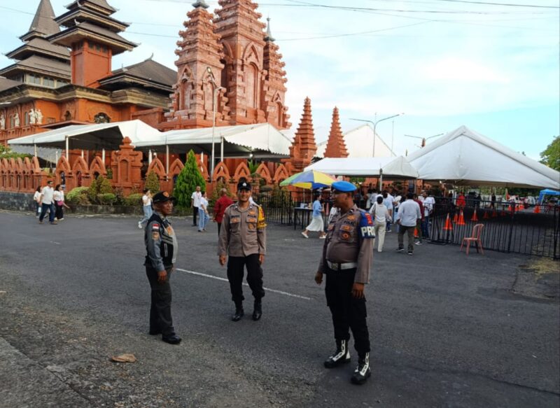 Pengamanan kegiatan juga melibatkan personel TNI, pecalang, Dishub serta petugas pengamanan internal gereja guna memastikan situasi tetap aman dan tertib selama berlangsungnya rangkaian ibadah.
