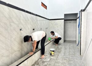 Seluruh peserta tampak antusias melaksanakan kerja bakti membersihkan seluruh area dalam dan halaman luar masjid, serta penataan sarana ibadah. Suasana kebersamaan dan keakraban tampak jelas, masing-masing saling membantu menyelesaikan setiap bagian pekerjaan.