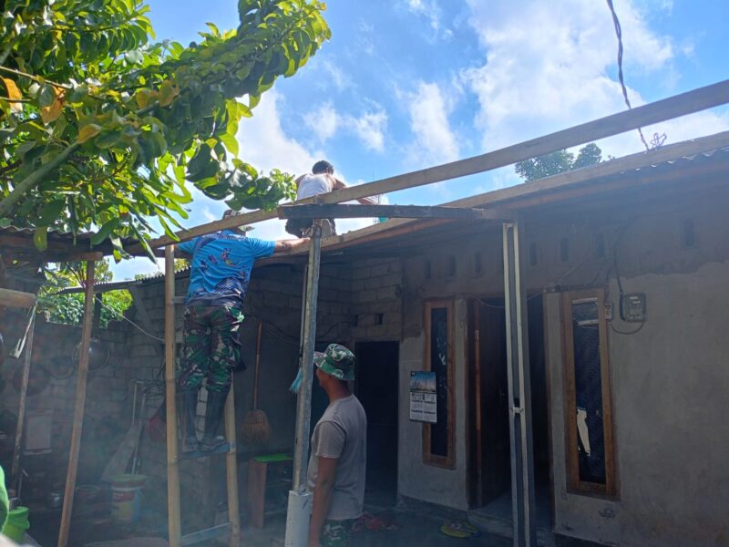 Adapun pengerjaan yang dilakukan meliputi penggantian atap rumah yang sudah tidak layak, peninggian tembok, pembuatan kamar, serta pekerjaan plester dan pengecatan. Seluruh proses ini dikerjakan secara gotong royong oleh personel Satgas TMMD bersama masyarakat setempat.