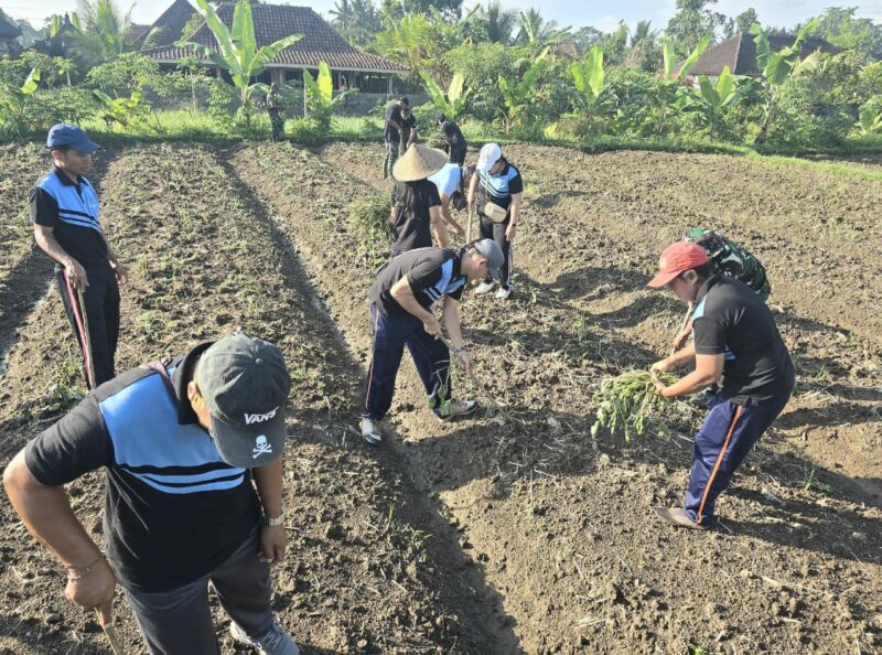 Dalam rangka TMMD Ke-126 Kodim 1611/Badung, membantu masyarakat meningkatkan Ketahanan Pangan (Hanpangan) di Desa Bongkasa Pertiwi, Kecamatan Abiansemal, Kabupaten Badung, dalam melaksanakan kegiatan penanaman Ubi ungu. Kegiatan ini merupakan bagian dari program tambahan Ketahanan Pangan yang bertujuan untuk membantu masyarakat dalam pengolahan lahan dan hasil tambahan di Desa Bongkasa Pertiwi, pada Minggu (02/11/2025).