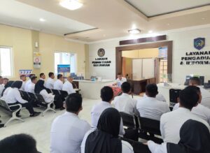 Dipimpin langsung oleh Kalapas Jember, RM. Kristyo Nugroho, simulasi ini melibatkan seluruh petugas layanan. Dengan penuh semangat, Kalapas memberikan pengarahan dan menjabarkan terkait uraian tugas masing-masing petugas secara detail untuk memastikan setiap tahapan layanan dipahami dan siap dilaksanakan.