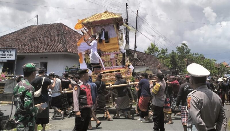 Dalam kesempatan tersebut, Babinsa Sertu I Made Sukajaya menyampaikan bahwa kehadiran TNI bersama aparat keamanan dan pecalang merupakan bentuk dukungan terhadap kelancaran kegiatan adat, sekaligus memastikan prosesi keagamaan dapat berjalan aman, tertib, dan lancar tanpa mengganggu pengguna jalan lainnya.(Pendim 1616/Gianyar).