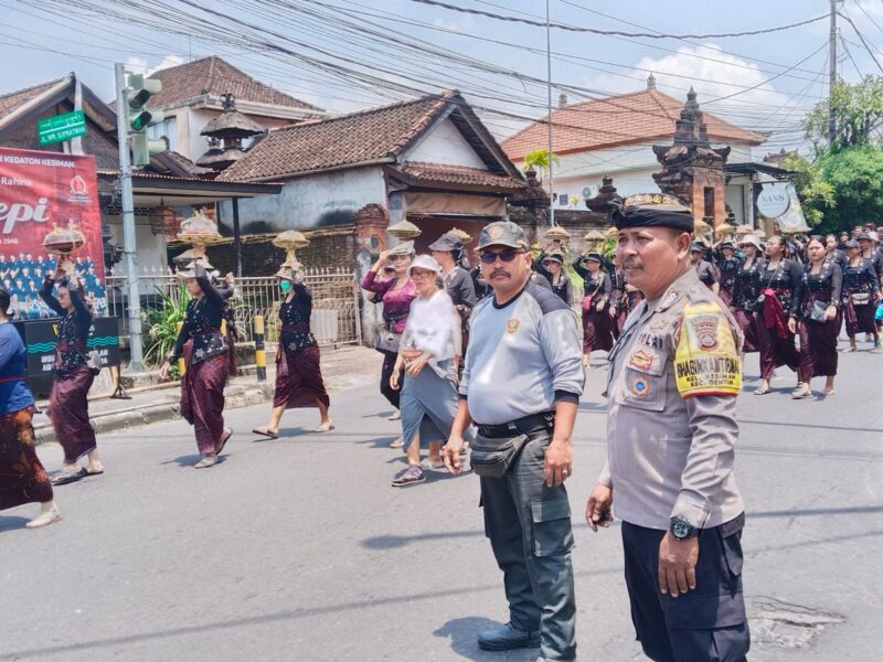 Dalam kegiatan tersebut, pengamanan dilakukan secara bersinergi oleh Bhabinkamtibmas Kelurahan Kesiman, Pecalang, serta Linmas Kelurahan Kesiman, guna memastikan seluruh rangkaian prosesi adat berjalan aman, tertib dan lancar.