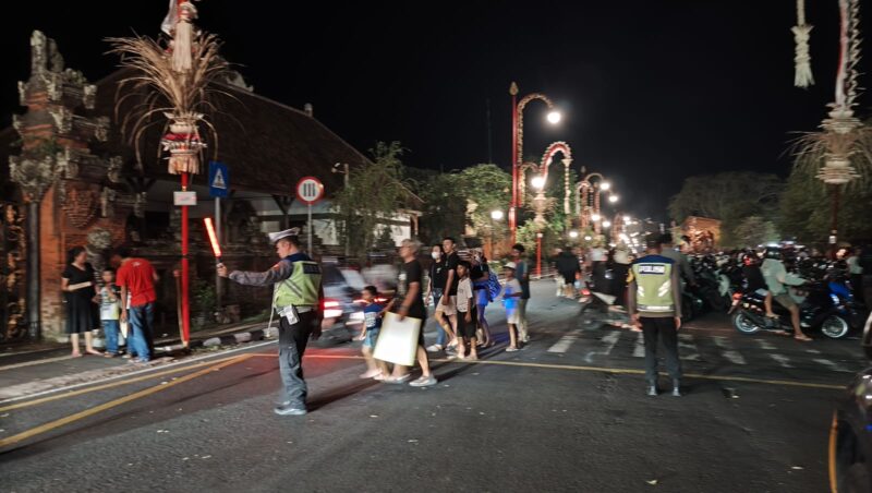 Selain pengamanan di area kegiatan, personel juga melaksanakan pengaturan arus lalu lintas di sekitar lokasi guna mencegah terjadinya kemacetan. Sinergitas bersama Dinas Perhubungan Kabupaten Gianyar menjadi kunci dalam menjaga kelancaran mobilitas masyarakat yang datang untuk menyaksikan pementasan seni budaya tersebut.