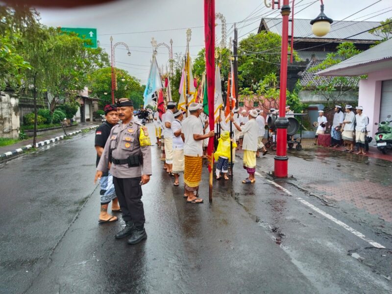 Dalam rangka menjaga keamanan dan ketertiban masyarakat serta kelancaran kegiatan adat, Bhabinkamtibmas Kelurahan Gianyar Aiptu I Gusti Ngurah Gede bersama personel piket fungsi Polsek Gianyar melaksanakan kegiatan pengamanan dan pengaturan arus lalu lintas pada upacara ke Beji Nunas Toya Ning, pada Selasa (10/02/2026) pagi.