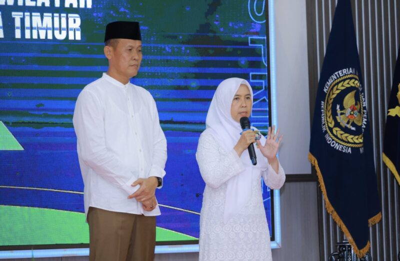 Kepala Lembaga Pemasyarakatan (Kalapas) Kelas IIA Jember, RM. Kristyo Nugroho, didampingi Ketua PIPAS Cabang Lapas Jember, Hj. Een Kristyo, menghadiri acara Halal Bihalal yang diselenggarakan oleh Kantor Wilayah Direktorat Jenderal Pemasyarakatan Jawa Timur bertempat di Lapas Kelas I Surabaya, pada Sabtu (4/4/2026).