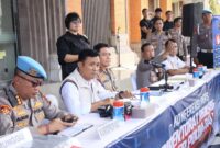Kapolda Bali Irjen Pol Daniel Adityajaya S.H., S.I.K., M.Si., saat konfrensi pers di loby Mapolda Bali didampingi, Diresnarkoba Kombes Pol Radiant S.I.K., M.Hum., Kabid…