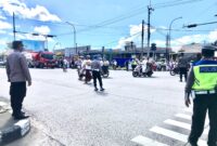 Kapolsek Gianyar Kompol I Made Adi Suryawan,S.H., M.M., didampingi Wakapolsek bersama personel Polsek Gianyar melaksanakan pengamanan dan pengaturan arus lalu lintas pada kegiatan upacara…