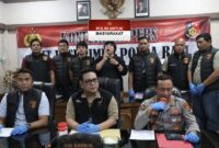 Konfrensi Pers di Aula Ditreskrimum Polda Bali, Dirreskrimum Kombes Pol. Dr. I Gede Adhi Mulyawarman, S.I.K., S.H., M.H., bersama Kabid Humas Kombes Pol Ariasandy…