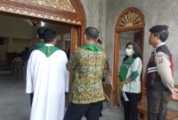 Personil Polres Gianyar bersama Polsek Gianyar melaksanakan pengamanan kegiatan Ibadah Misa Minggu umat Kristen di Gereja Santa Maria Ratu Rosari, Jalan Mulawarman, Kelurahan Abianbase,…