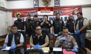 Gelar Konfrensi Pers di Aula Ditreskrimum Polda Bali, Dirreskrimum Kombes Pol. Dr. I Gede Adhi Mulyawarman, S.I.K., S.H., M.H., bersama Kabid Humas Kombes Pol Ariasandy S.I.K., didampingi Kasubdit I Kompol R Moch Dwi Ramadhanto, SH., S.I.K., M.H., menerangkan bahwa quick respon dan gerak cepat Tim gabungan Ditreskrimum Polda Bali dan Polres Jembrana kurang dari 4 jam berhasil ungkap kasus Vandalisme aksi corat-coret Bendera Merah Putih, pada Kamis (20/11/2025).