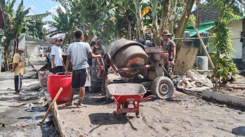 Gotong Royong TNI dan Warga, Jalan Dusun Getap Mulai Dicor