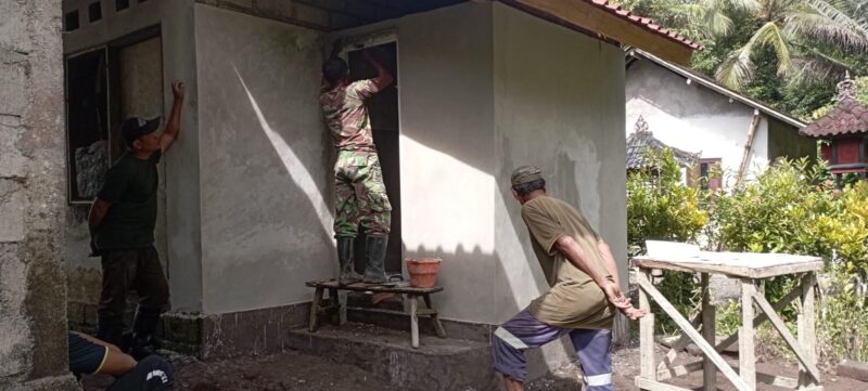 Sanitasi: Pengerjaan Bedah WC milik I Ketut Sutarma memasuki tahap pengacian dinding dan pemasangan keramik lantai.