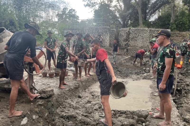 Kegiatan ini melibatkan personel TNI, serta warga setempat yang dengan antusias bergotong royong menyelesaikan pekerjaan di lapangan. Pengecoran sayap bendungan dilakukan untuk memperkuat struktur dan mencegah erosi yang sering terjadi saat musim hujan.