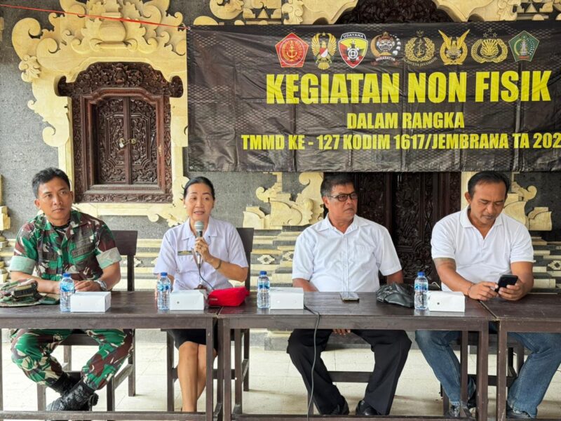 Satuan Tugas (Satgas) TMMD ke-127 Kodim 1617/Jembrana terus tancap gas melaksanakan sasaran non-fisik. Kali ini, fokus diarahkan pada peningkatan kualitas sumber daya manusia melalui kegiatan Sosialisasi Penyuluhan KB dan Kesehatan yang digelar di Balai Banjar Anyar Tengah, Desa Penyaringan, Kecamatan Mendoyo, pada Rabu (25/02/2026).