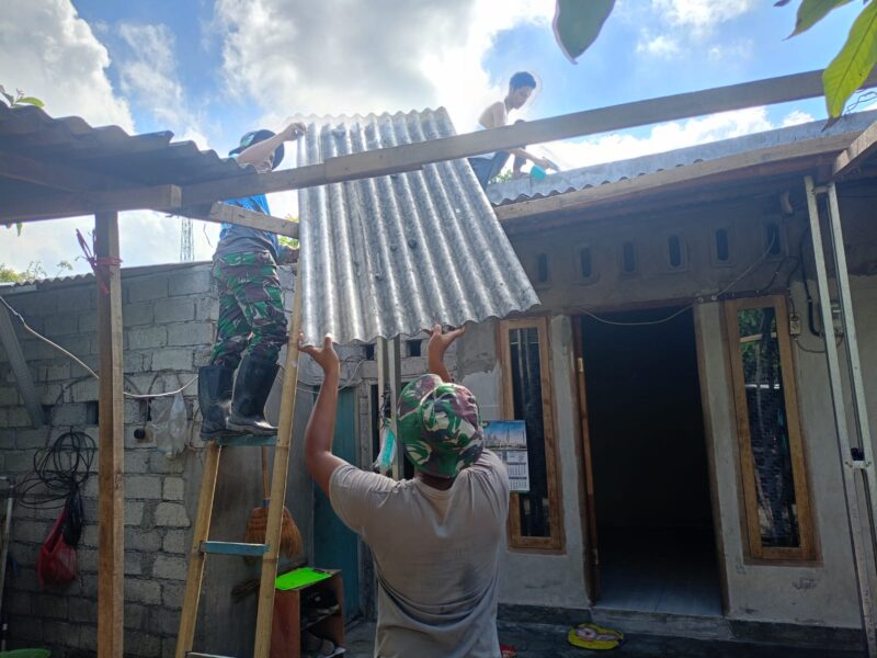 Adapun pengerjaan yang dilakukan meliputi penggantian atap rumah yang sudah tidak layak, peninggian tembok, pembuatan kamar, serta pekerjaan plester dan pengecatan. Seluruh proses ini dikerjakan secara gotong royong oleh personel Satgas TMMD bersama masyarakat setempat.