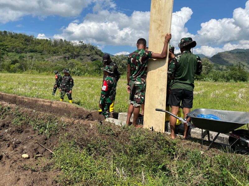 Program TNI Manunggal Membangun Desa (TMMD) ke-126 Kodim 1625/Ngada terus menunjukkan hasil nyata di lapangan. Hingga saat ini, kegiatan fisik berupa pengecoran dinding saluran irigasi di lokasi Saluran Irigasi Pu’un Keo, Desa Benteng Tawa, Kecamatan Riung Barat, Kabupaten Ngada, pada Senin (27/10/2025), telah mencapai progres 77 persen.