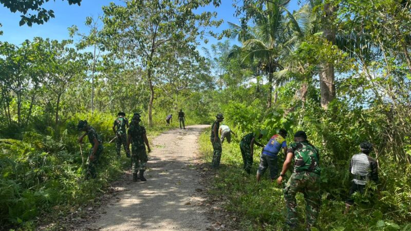 Dalam rangka mendukung percepatan pembangunan infrastruktur di wilayah pedesaan, anggota Satgas TMMD Ke-128 melaksanakan kegiatan pembersihan jalan sebagai tahap awal perbaikan jalan sepanjang 1.500 meter di Desa Umbu Wangu, Kecamatan Wewewa Selatan, Kabupaten Sumba Barat Daya.