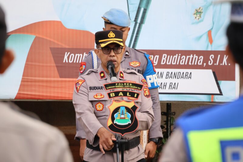 Wakapolres Kawasan Bandara I Gusti Ngurah Rai KOMPOL I Nengah Sudiarta, S.Sos. memimpin Apel Pagi Jam Pimpinan yang dilaksanakan di halaman Mako Polres Kawasan Bandara I Gusti Ngurah Rai, Senin (9/3/2026). Kegiatan tersebut diikuti oleh para Pejabat Utama (PJU), perwira, bintara serta ASN Polres Kawasan Bandara I Gusti Ngurah Rai.