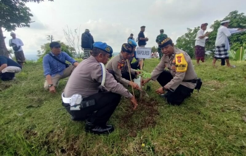 Kepala Kepolisian Resor (Kapolres) Bangli yang diwakili oleh Kapolsek Bangli, Kompol I Dewa Made Suryatmaja, S.H., M.H., menghadiri kegiatan program gotong royong semesta berencana dalam upaya mewujudkan pelestarian lingkungan di Kabupaten Bangli. Kegiatan ini berlangsung di Pura Pucak Hyang Ukir Bukit Bangli dan dihadiri oleh berbagai pejabat daerah, termasuk Wakil Bupati Bangli, Dandim 1626 Bangli, para Kepala OPD di Lingkungan Pemkab Bangli, Camat se-Kab. Bangli, dan lainnya, pada Sabtu (25/10/2025).