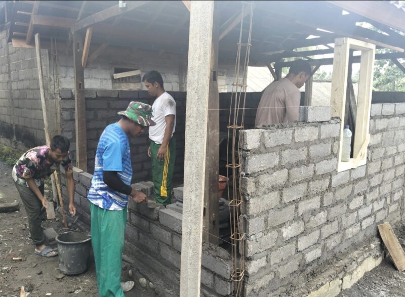 Wujudkan Hunian Layak, Personil Satgas TMMD 127 Fokus Tuntaskan Tahap Pemasangan Dinding Rumah